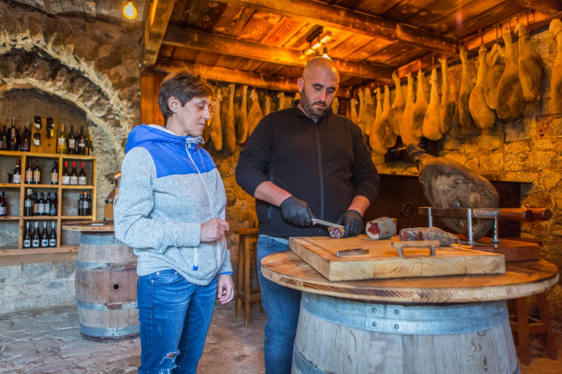 La Rencontre Gastronome - Formule "Spuntinu" inclut la visite de l'exploitation accompagnée par Pierre-Louis Pistorozzi, éleveur et artisan charcutier, en français, puis la dégustation de produits locaux.